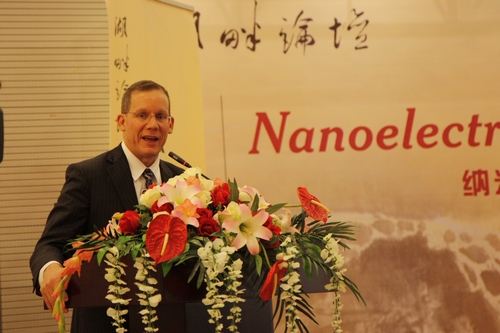 讲座中,Lieber 教授与大家分享了他的最新研究工作进展:使用核壳结构的Ge/Si纳米线构建了纳米逻辑与非门电路,向3D纳米处理器的研发前进了一步;构建了P/PIN核壳结构Si纳米线太阳能电池,实现了高光电转换效率;将纳米电子学器件应用于生物领域,使用纳米探针探测细胞内部的电学和生物化学信号,以及无缝整合纳米电子学器件和合成生物组织。