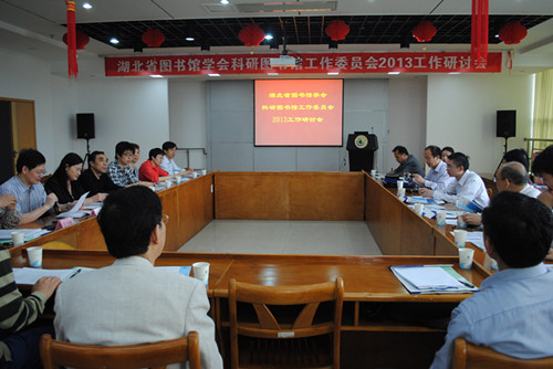 为交流知识服务经验,共享开放信息资源,推广知识服务,促进科研图书馆向知识服务转型和深化,更好的满足科研信息服务的新需求,5月9日,湖北省图书馆学会科研图书馆工作委员会2013工作研讨会在中科院国家科学图书馆武汉分馆召开,来自湖北省科技信息研究院、湖北省社科院、长江科学院信息中心、湖北省地震局文献信息中心等二十多家成员单位代表出席此次会议。本次会议由湖北省图学会副会长、武汉分馆馆长钟永恒主持。