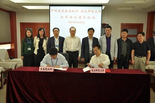 5月24日,中科院长春光学精密机械与物理研究所与东北师范大学协同创新合作发展协议签字仪式在长春光机所举行。长春光机所所长宣明和东北师范大学校长刘益春分别代表双方签署协议。双方部分管理部门负责人参加了签约仪式。