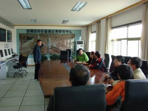 姚檀栋一行先后参观了西藏自治区气象台、西藏高原大气环境科学研究所(西藏自治区遥感应用研究中心)和西藏气象服务中心,听取了相关汇报,并与自治区气象局各部门负责人举行了座谈,就双方共同感兴趣的合作研究进行了深入交流。姚檀栋感谢西藏自治区气象局长期以来的大力支持。他说,西藏气象局提出的“两个体系、四个作用、五个功能”的发展目标明确,为双方未来合作发展提供了坚实平台。双方应在以往良好合作的基础上,充分发挥各自优势,深入推动合作研究工作开展,一是依托现有气象台站和野外观测研究平台,共同开展好科学观测和样品采集工作,包括同位素等具体研究;二是发挥研究优势,为地方持续发展服务,特别是做好西藏生态环境评估;三是加强数据资料共享,共同建设好气象数据和遥感监测数据共享平台,提供坚实数据支撑。