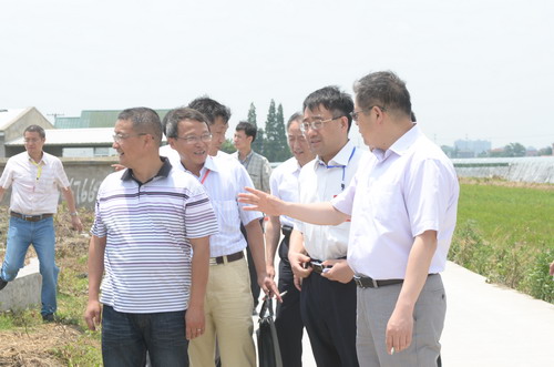6月9日,浙江省嘉兴市政府副市长柴永强、市政协副主席邢海华、市政府副秘书长施震东等由中科院科技促进发展局(筹)副局长冯仁国、亚热带农业生态研究所副所长吴金水陪同考察了嘉兴市南湖区新丰镇五丰牧业有限公司的养殖废弃物污染减控试验示范基地。
