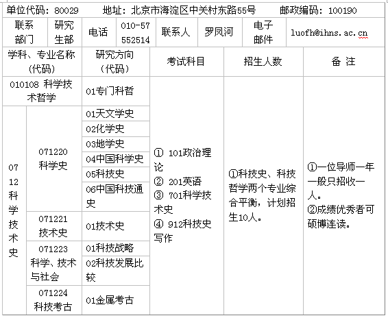 欢迎您报考自然科学史研究所,与我们一道共同繁荣我国科技史事业