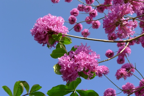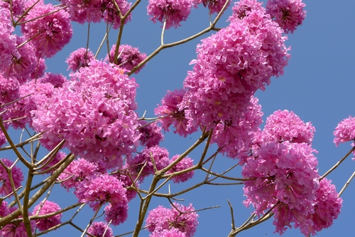洋红风铃木Tabebuia rosea (Bertol.) Bertero ex A.DC.,又名巴拉圭风铃木,红花伊培树、喇叭树等,为紫葳科风铃木属乔木,株高10多米,掌状复叶对生。花冠铃形,总状花序,花冠钟形,花期在1至2月,早春开花。