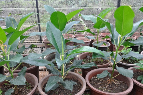 西双版纳热带植物园2012年从澳大利亚引回澳洲大叶榕Ficus macrophylla种子,经精心培育现已获得20株幼苗,最高株80厘米。