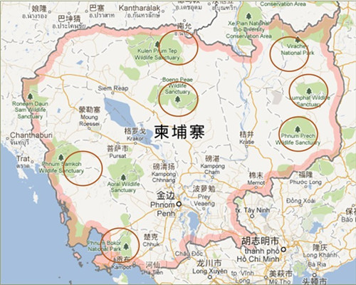 本次考察为期一个月,根据柬埔寨保护区以及主要森林的分布,我们制定了详细的考查计划,主要对6省份(Mondolkiri,Ratanakkiri,Preah Vihear,Siem Reab,Kampot,Koh Kong)有代表性的区域进行了考察。