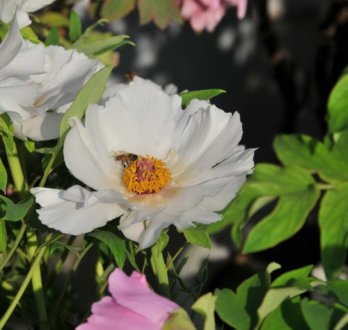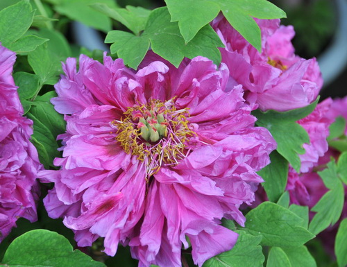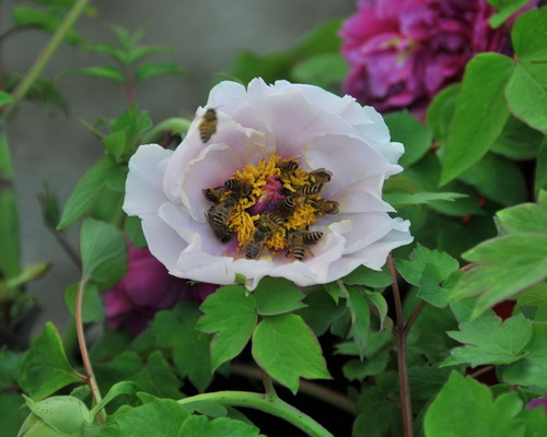 植物就像希腊神话里的九头蛇一样,为了子孙后代能不断地繁衍下去,采取了各种各样的方法,其中最常见的方法就是开花结果,把繁衍的任务交给种子,这种繁殖方式称为有性繁殖。而对于牡丹来说,有性繁殖是最昂贵,而且要付出毕生代价的繁殖方式。为了制造种子,牡丹一次次将积蓄的能量,交付给花朵。虽然花有华丽的外表,备受人们的喜爱,但是在牡丹眼里,花只有一个利用的价值,那就是授粉。为了引起媒介动物们的注意,聪明的牡丹花,装扮成大大小小的花朵、与众不同的花色,还远远地散播着香气,等待着动物们的造访。为了这次授粉,牡丹可谓付出了惨重的代价,花蜜被盗掘一空,花蕊被糟蹋得东倒西歪,花瓣里一片狼藉。同时它的使命也即将结束,它要把下一站的任务交给果实。只是牡丹花不知道,千百年来它在完成这个任务的过程中,比别的植物花朵获得了更多的喝彩和掌声,所以它是幸运的。牡丹的果实全身心地守护种子的安全,而播下去的种子就是下一个生命的开始。牡丹在野生的状态下,主要采用这样的繁殖方式。