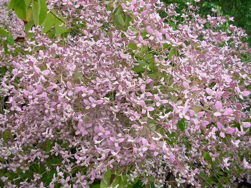 眼下,正是绒苞藤盛开的时节,远远望去,那紫红色的苞片挂满整个植株,它们挨挨挤挤,密密层层,开得那样盛,开得那样密,在草地的衬映下,绒苞藤花显得更加淡雅,更加俏丽。