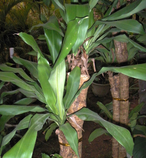 巴西木(Dracaena fragrans)属龙舌兰科龙血树属常绿乔木,叶簇生于茎顶端,叶片任意伸展,呈弓形弯曲,亮丽而富有光泽;株形优美,挺直又显规整,是室内常见的观叶植物品种。
