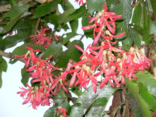 树蓼(Triplaris americana L.)属蓼科植物,株高可达5-10米。蓼科家庭的成员大多为草本,少数是亚灌木,树蓼是蓼科家族中能长成大树为数不多的成员之一。它的花果期在1-5月间,在此期间,那粉红色的花果,缀满整个树冠非常显眼,煞是热闹,能给人们带来许多视觉上的享受。在庭园绿化中树蓼即可观花又可观果,且观赏期长,在园林中具有很大的发展潜力。