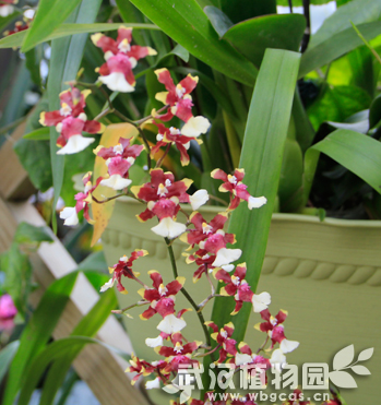 走进武汉植物园景观温室,可以看到廊架上都是文心兰。它们仿佛一群翩翩起舞的美女,十分美妙。瞧瞧它们的样子,花瓣呈现巧克力般的褐色,当然要叫“巧克力文心兰”(Oncidium Cocoa)了。