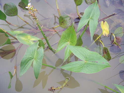 大慈姑(Sagittaria montevidensis)是泽泻科慈菇属多年生挺水草本,株高40-70厘米;叶戟状三角形,叶柄圆柱形,中空。原产南美洲,生长于湿地或浅水区域,喜高温潮湿环境,粗生,适应性广;园林水景布置常群植或丛植,也可盆栽。