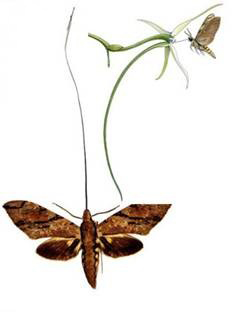 1862年,达尔文发现了原产于马达加斯加的奇异物种——大彗星风兰。这种植物似乎违背了生物进化法则,因为它细细的花距长达20cm。达尔文想,如此长的花距,传粉者需要多长的喙才够得着底部的花蜜?