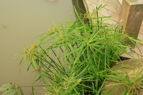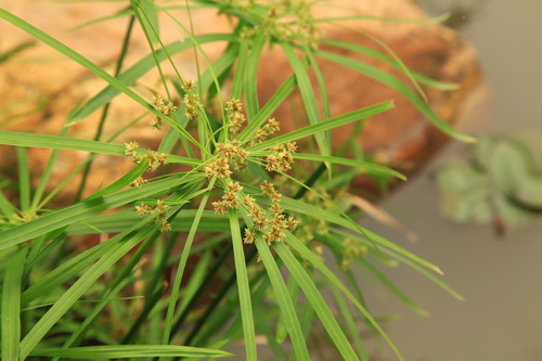 风车草常依水而生,植株茂密,丛生,茎杆秀雅挺拔,叶伞状,奇特优美。种植于溪流岸边,与假山、礁石搭配,四季常绿,风姿绰约,尽显安然娴静的自然美,是园林水体造景常用的观叶植物。