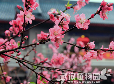 桃花,即桃树盛开的花朵,属蔷薇科植物。桃的拉丁学名为Amygdalus persica 其叶椭圆状披针形,核果近球形,主要分果桃和花桃两大类,园内展出的多是花桃。桃花树态优美,树干扶疏,花朵娇艳美丽,为早春重要观花树种。