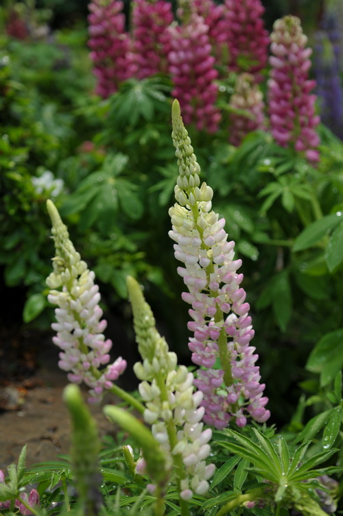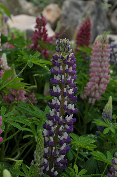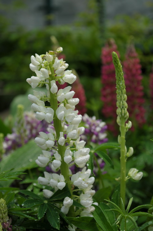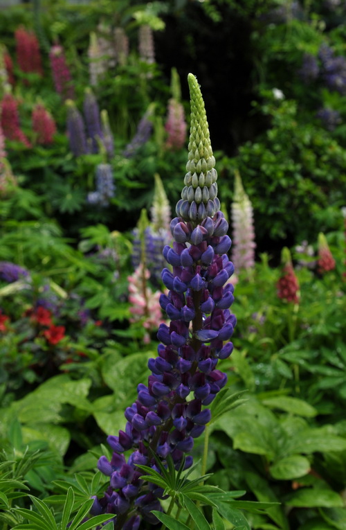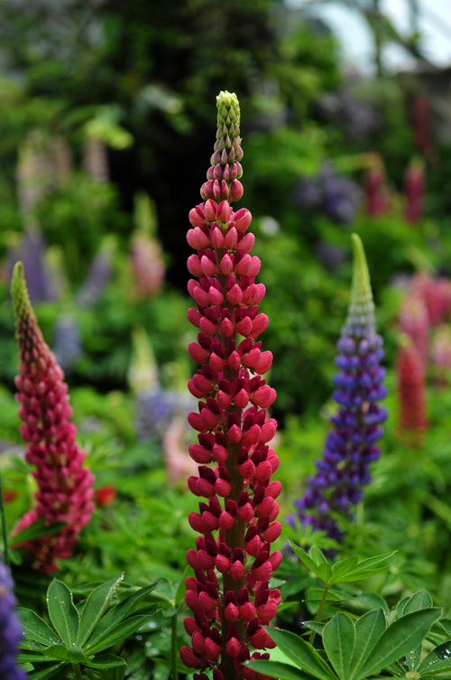 我们现在观赏到的鲁冰花,属于园艺栽培品种,一般高80厘米左右,最引人注目的是特殊造型的花序和花朵,长长的宝塔状花序自茎端伸出,由上百朵蝶形的小花密密组成,每串长50厘米左右,而且花朵颜色丰富,除了常见的白色、红色外,还有浅蓝、粉红、砖红、双色等,并散发着浓烈的沁人心脾的香味。典型的掌状复叶,由多枚细长呈放射状的小叶子构成,整片掌状复叶在长柄的支撑下,就像一把羽扇。自然花期通常在春季至秋季,花后结出荚果,内有黑色扁圆形的种子。可能你有所不知,小小的鲁冰花种子,还创造了一个世界之最呢。科学家于1976年在北美肯河岩洞中发现的鲁冰花种子至今已有17000年,是目前所知寿命最长的种子。