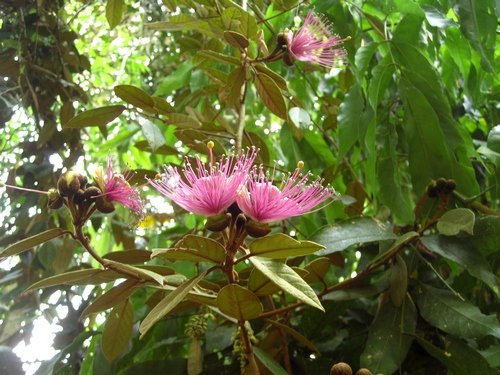 荚蒾叶山柑(Capparis viburnifolia Gagn.)是山柑科山柑属的植物,似藤非藤,似木非木,巨长的身躯攀援在其它树上。枝条布满粗壮外弯的皮刺,令人见而生畏。单叶互生革质,着生锈色柔毛,花3至数朵在枝顶集生成伞房状花序。这种植物独具特色世代相传,含苞待放之前,个个花苞黑漆漆的;脱开丑陋的外衣(萼片),含苞怒放之后,紫白色花瓣和紫红色花丝却激情四射。正是这种美与丑的反差与转化,道出一个哲理:任何事物不能被表面现象所迷惑,透过现象才能看清本质。