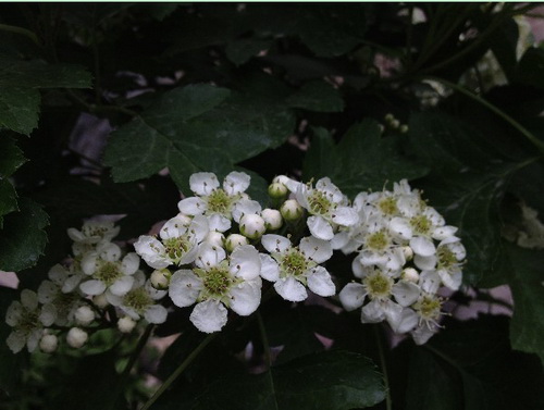 上海辰山植物科学研究中心)岩石药用园内几株山楂树(Crataegus pinnatifida),进入了盛花期,满树的洁白的小花,远远看去就像一朵朵白云漂浮在空中。