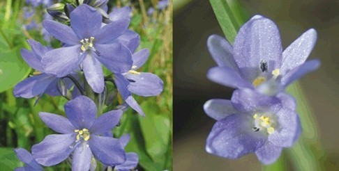 此外,花内雄蕊除了存在花丝长短的分化,也有花药颜色的分化。其内轮雄蕊较少,但花丝很长,且反折隐蔽于分叉的柱头之下,而外轮数量众多的雄蕊花丝短,颜色鲜艳,给访花者喂食花粉。当访花者取食这些短小雄蕊的时候,上方的长雄蕊花药将花粉释放到访花者的背部。这些花药颜色的分化主要是通过部分具有鲜艳颜色的雄蕊或花药起到吸引传粉者的作用,另外一部分不显眼的雄蕊则通过直接碰触传粉者的身体来提高花粉输出率,可以减少传粉者对这些花粉直接取食而造成的花粉损失。例如,鸭跖草(Commelina communis)雄蕊分化成3类,位于花侧的颜色暗淡的2个雄蕊、位于花中央颜色暗淡的1个雄蕊,另有3个鲜黄色的退化雄蕊,这3个颜色鲜艳的退化雄蕊通过形态和颜色模拟成饱含花粉的样子吸引了大量的访花者。