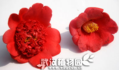 左边:花蕊瓣化的重瓣花  右边:正常的单瓣花