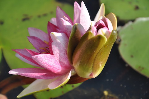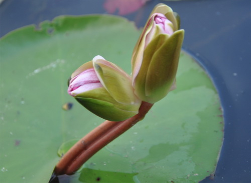 据华南植物园水生园负责人陈磊博士介绍,睡莲在生长过程中,一般只形成一个花芽、一个分生中心、开一朵花;如果受到特殊条件刺激或特殊变异,一支茎上的花芽也有可能分化成两个分生中心而发育出两个像是双胞胎的花蕾,从而开出并蒂莲。不过,从华南植物园的这一支并蒂莲看,它应该不是变异形成的,而是两支花蕾高度同步成长、又因紧挨着而产生粘连而最终成为“并蒂睡莲”的。然而,不管是“并蒂”还是变异,产生并蒂莲的机率都仅有十万分之一,而且至今未能成功培育,对其遗传机制尚不清楚,所以它是可遇不可求的,难得一见。
