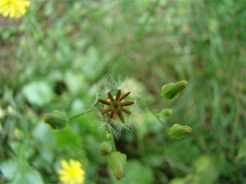 日本黄鹌菜是如何实现它的杂草化进化路线的呢? 黄鹌菜是典型的R-对策植物,条件合适快速萌发,世代周期短,1年可以繁殖数代,在成都地区基本一年四季都可以繁殖。除了有性繁殖外,还能够通过无融合生殖繁育后代。它的种子较小,1株可以产生几百甚至上千颗种子,种子具长冠毛,可以向蒲公英一样随风传播较远的距离,冠毛也可以附着在动物身上,实现其长距离传播的目的。
