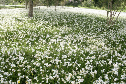 连续几天的降雨,使得西双版纳热带植物园百花园的葱兰盛开了。成千上万朵婷婷玉立的小白花一朵挨着一朵,高低错落,组成一片白茫茫的花海。它那细瓷般洁白的花瓣,透着明黄的花蕊,让人有一种妩媚神韵的感觉。