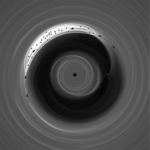 尘埃盘一侧的气体涡旋为尘埃颗粒提供了避风港。图片来源:Philip J. Armitage/Science