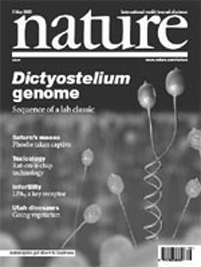 群居生活的变形虫“阿米巴”在两种形态之间进行切换:一种是孤立的单细胞生物,另一种是能表现出高等真核生物典型的细胞分异和协作的多细胞形式。由于这个原因,也由于它能够用来进行实验研究,“阿米巴”成为了解细胞通信和分异方式的一种关键模型生物。现在,本期Nature发表了这种变形虫的完整基因组序列,同时还发表了对其基因组和蛋白组所做的分析。其基因组的特点包括有大量基因参与生成和输出小分子。该生物起源于真核生物演化的根部,这意味着,关于真核生物起源和分化的问题也可通过其基因组来研究。封面图片描绘的是该变形虫的多细胞形式。