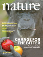 是否能够尝到苦味是是否能够发现食物中毒素的关键。苯硫脲(PTC)是一种不同寻常的化学物质,其特殊性在于它要么味道非常苦,要么几乎没有味道,这主要取决于一个人的遗传情况。在1939年发表在Nature杂志上的一篇经典论文中,R. A. Foster、E. B. Ford 和J. S. Huxley指出,黑猩猩对PTC也有不同的敏感度,这被认为是反映了人类与黑猩猩之间共有的一个古老的遗传多态性,是由自然选择维持下来的。现在,由于主管人类PTC敏感度的TAS2R38位点已经被识别出来,Wooding等人便对人类与黑猩猩在这个问题上的相似性重新作了比较。TAS2R38也与黑猩猩的PTC敏感度有关,但令人吃惊的是,造成这一多态性的突变在两个物种身上是不同的。在原始人类的演化过程中,“无味觉”等位基因似乎至少独立演化过两次。