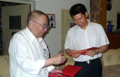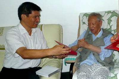 副院长、党组成员詹文龙于9月27日亲切看望了中科院三位早期回国定居的老专家,他们是数学与系统科学研究院的刘源张院士、力学研究所的周光地研究员和高能物理研究所的郑林生研究员。詹文龙代表院党组向老专家致以节日的祝贺和亲切的问候,并为他们送去了院党组的慰问信和中科院建院60周年纪念章。 詹文龙亲切询问了老专家的健康及生活状况,并祝愿他们老有所为,老有所乐,身体健康,生活幸福。詹文龙还向他们通报了中科院最近在科学探索、技术创新、培养引进高层次创新人才和研究生教育等方面的进展情况,希望他们继续为中科院的改革创新和发展奉献经验和智慧。老专家为今天中科院欣欣向荣的景象感到无比欣慰和鼓舞,他们对院党组和院领导的关心表示衷心感谢。 人事教育局副局长苗鸿、力学研究所所长樊菁、高能物理研究所党委书记王焕玉、数学与系统科学研究院副院长洪佳林、陈敏,系统所所长高小山等陪同看望。