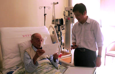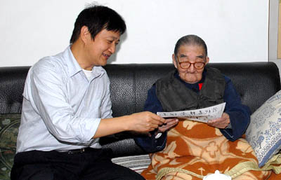 院士贝时璋。李静海代表院党组向老领导、老院士表示亲切慰问,他转达了中科院院长路甬祥对老领导、老院士的节日问候,并为他们送去了院党组的慰问信和中科院建院60周年纪念章。