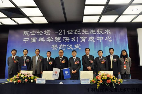 作为中科院与深圳市政府的战略合作项目——中科院深圳育成中心,于11月16日第十一届高交会开幕式当天举行了签约仪式。中科院副院长施尔畏、深圳市副市长陈应春、招商局集团副总裁孙承铭等领导出度了仪式并讲话。