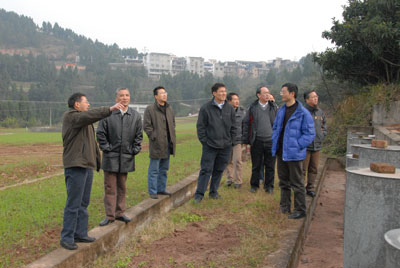丁仲礼一行首先察看了盐亭站综合观测试验场并听取了朱波站长对台站坡地土壤侵蚀、紫色岩风化成土、坡地养分平衡、轮作与秸秆还田等长期实验和野外模拟降雨试验、山区村镇生活污水的生态净化系统等的科学设计、研究进展的详细汇报。在考察过程中,丁仲礼不时询问相关科学问题、成果及推广与示范情况并深入当地农户,详细了解了农民经济收入与生活现状。在盐亭站会议室,朱波站长就盐亭站近年来在平台建设、监测、研究与示范推广等方面的工作和未来发展规划的作了简要汇报。在座谈中,丁仲礼与在站工作的科研人员进行了交流与讨论。他肯定了盐亭站在解决紫色土坡地农业和区域水环境等问题中取得的成绩,同时强调,盐亭站的工作要为区域发展提供可供借鉴的技术措施和应用模式,要提出解决低效林改造模式和高效坡地农业的关键技术。丁仲礼最后指出,研究工作要勇于接受挑战,敢于科学创新,要从国家需求中发现科学问题,进而合理分解和分步落实,通过学科交叉合作提出具体的解决途径,为地方经济建设和社会可持续发展做出有重要显示度的贡献。