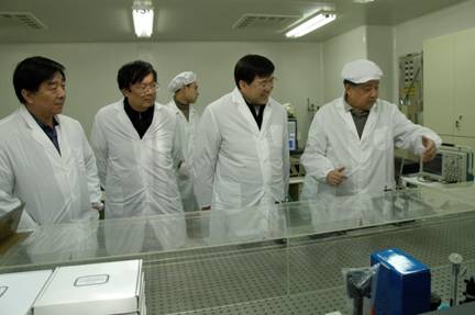 7日上午,阴和俊副院长一行首先调研了上海技物所,听取了何力所长等关于重大项目进展、2010年工作思路与部署的汇报,实地调研了重大项目进展情况。阴和俊副院长指出,上海技物所秉承优良传统,围绕国家战略需求、立足国家重大项目,发挥特色核心技术、攻关突破成效显著,多年以来坚持扎实开展工作,在高技术片研究所中具有一定的代表性。针对后续发展,一是要加强任务的组织与管理,理顺研究所管理的机制体制,确保全力落实事关研究所长远发展的重大任务;二是加强队伍建设,特别是领军人才、骨干人才、实用人才的培养引进;三是加强平台建设和能力建设,要抓住嘉定园区建设机遇,全面规划、打好基础;四是加强与上级机关的沟通、加强与同行的交流、加强与用户的合作;五是积极参与国家有关部门“十二五”规划有关工作。
