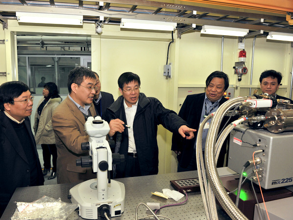 中科院基础局局长刘鸣华、综合处处长黄敏、大核处处长乔润龙参加调研。