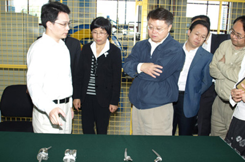 江绵恒一行先后参观材料所的特纤事业部、磁性材料事业部,先进制造所的智能测控仿实验室、直线电机实验室、复合材料制造技术实验室,新能源所的固态氧化物燃料电池事业部,并参观了部分科研成果的展示。每到一处,江绵恒仔细看,细心听,不时提问,与科研人员认真交流,详细和深入了解这些科研成果的原理、创新的内容、应用前景与技术出口、与企业合作及产业化、当前进展等情况,并就部分科研成果的应用方向和研发模式与科研人员进行探讨。