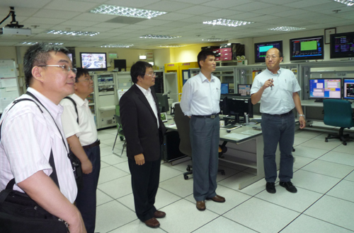 詹文龙(右二)参观台湾同步辐射研究中心的中控室