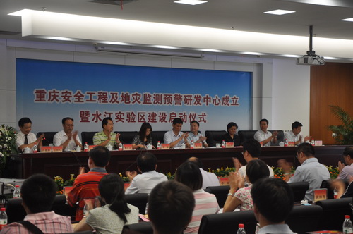 詹文龙院长长期以来一直积极推动力学所在滑坡灾害方面的研究工作,此次专程参加安全工程及地灾监测预警研发中心启动会,并与重庆市领导商谈加强双方在安全工程及地质灾害监测预警领域的合作,推广中科院新的防灾管理模式和技术路线。詹院长在启动会上表示,重庆工程安全及地质灾害监测预警中心落户重庆后,将更好地将中科院的研究成果进行实验应用,逐步研究出新的成果并在全国推广应用,为我国科学防灾体系的建立发挥其更加积极的作用。重庆市人大常委会党组副书记余远牧、重庆市安监局局长肖健康、重庆市国土资源和房屋管理局总工程师李仕川在中心启动会上先后发言,对中科院副院长詹文龙院士一行莅临重庆指导工作表示衷心感谢,指出重庆市相关部门将强力关注和大力支持中心建设,务求与中科院的合作落到实处、收到实效。