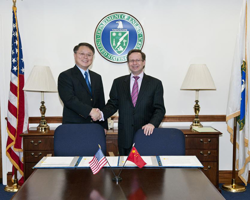 江绵恒与美国能源部副部长Steven Koonin在签字仪式上