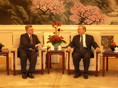 3月6日,国际科学院委员会(IAC)联合主席路甬祥在人民大会堂会见了来访的IAC执行主任坎贝尔(John. Campbell)博士。