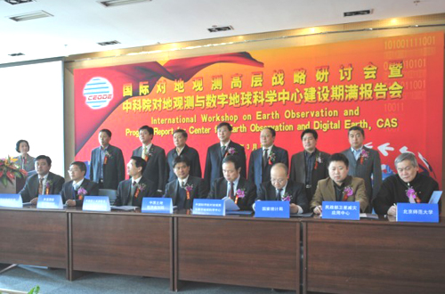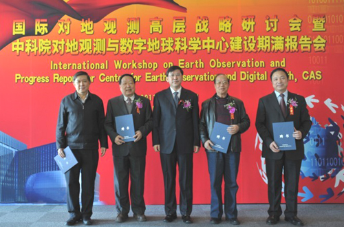 会上,阴和俊还为中科院数字地球重点实验室第一届学术委员会主任、副主任颁发了聘书,并见证了对地观测中心“对地观测数据共享计划”的签约仪式。阴和俊副院长还参观了对地观测中心数字地球演示大厅,观看了数字地球科学平台演示版所展示的平台在全球变化模拟、自然灾害评估、资源环境监测等领域发挥的作用。