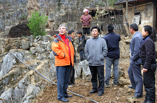 胡瑞忠所长陪同丁仲礼对小营村喀斯特石漠化生态状况进行调查