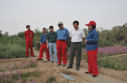 党组成员、副秘书长何岩一行在中科院新疆生态与地理研究所副所长雷加强的陪同下视察塔里木沙漠公路防护林和塔克拉玛干沙漠研究站,并与中国石油天然气有限公司塔里木油田分公司领导会晤。