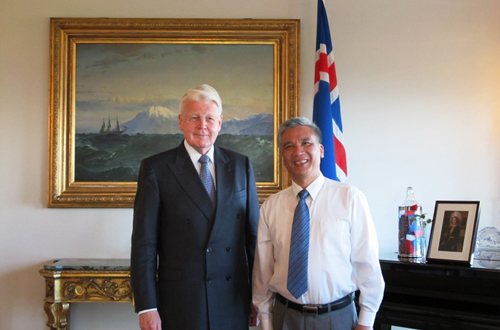 7月16日,冰岛总统奥拉维尔·拉格纳·格里姆松(Olafur Ragnar Grimsson)在总统官邸会见了丁仲礼一行。格里姆松指出今年恰逢中国和冰岛建交四十周年,双方的科技合作日益频繁,8月由冰岛大学承办第三届TPE(第三极研究计划)学术研讨会,将进一步推动双方的交流。丁仲礼向格里姆松总统的招待表达了谢意。他指出,这次会见双方达成了广泛共识,TPE国际计划的实施将进一步促进中冰乃至更大范围的合作,同时欢迎冰岛方面的科研人员到中国进行访问交流。