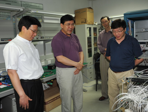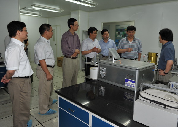 阴和俊首先调研了紫金山天文台盱眙观测站基础设施和观测设备、紫台空间目标与碎片观测实验室、暗物质与空间天文实验室和毫米波与亚毫米波实验室等,听取了紫台关于暗物质卫星项目进展情况、太赫兹探测技术情况、小行星深空探测组织情况的工作汇报。在调研过程中,阴和俊详细了解了紫台近期工作情况以及“十二五”发展规划,询问了观测站和实验室的设备运行、队伍建设和科研任务情况,并在现场和工作人员交谈。