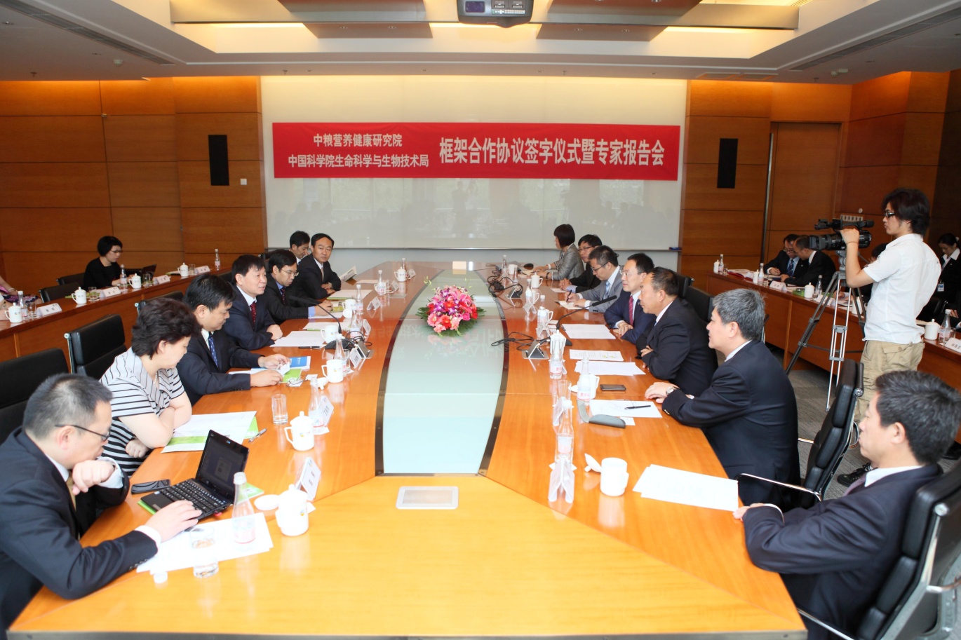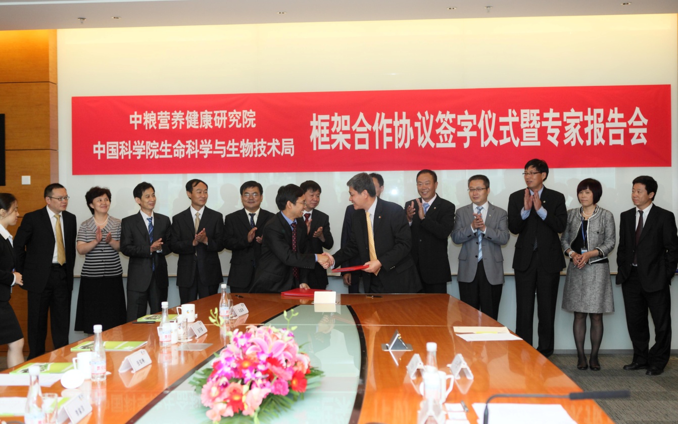 生命科学与生物技术局局长张知彬、中粮集团营养健康研究院筹备组组长郝小明代表双方签署了合作协议。生命科学与生物技术局相关领导,中粮集团有限公司副总裁马建平等出席签约仪式。