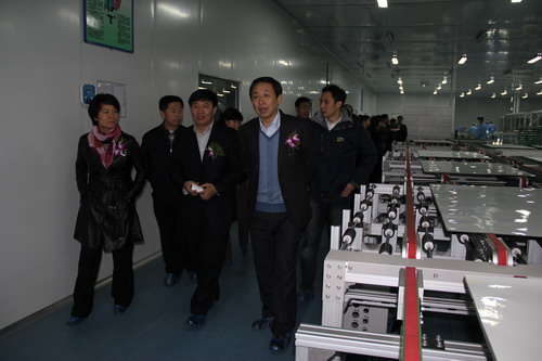 在唐山期间,何岩一行还考察了中视中科激光显示核心产业基地、中科院重要方向性项目“滨海盐碱地绿化技术研究与示范”现场和丰南万丰制管有限公司“钢坯高温防氧化技术工业生产线”;出席了电工所与唐山海泰新能科技有限公司合作的“唐山中心太阳能电池产业基地”揭牌仪式暨海泰600兆瓦太阳能电池组件生产线投产剪彩仪式;出席了过程工程所与唐山市三川机械制造有限公司合作的“唐山中心大型机床颗粒阻尼减振技术示范基地”揭牌仪式,参观了该技术在车床及大型龙门铣立柱上的应用。