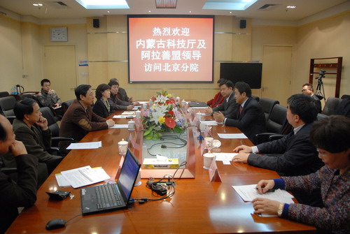 党组成员、北京分院党组书记何岩会见来访的阿拉善盟行署盟长冯玉臻一行,就进一步加强北京分院与阿拉善盟开展全面科技合作事宜进行座谈,北京分院党组常务副书记、副院长、京区党委常务副书记马扬等出席座谈会。