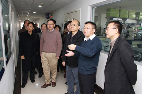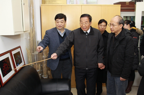 张亚平一行首先考察了植物细胞与染色体工程国家重点实验室、植物基因组学国家重点实验室和分子发育生物学国家重点实验室,并参观了新温室与实验动物中心,详细了解了研究所各实验室的科研进展情况,听取了李振声院士对小麦远缘杂交育种发展历程和最新进展的介绍。