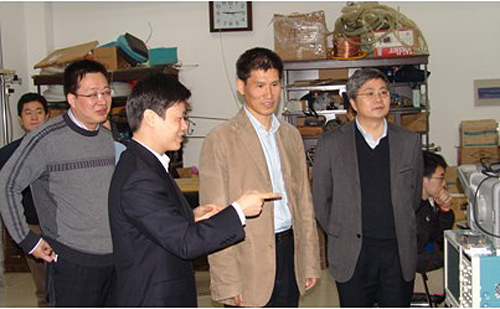 29日,詹文龙来到中国科学技术大学,考察了国家同步辐射实验室、合肥微尺度物质科学国家实验室、核探测与核电子学国家重点实验室、中科院量子信息重点实验室等重要科研单元,听取了合肥光源重大维修改造项目进展情况介绍,深入了解了量子计算研究的最新进展、重大仪器研制项目情况,以及蜂巢式SOFC电池堆的研制情况和产业化相关工作,高度评价了中科大在量子信息领域取得的成绩。在听取有关校领导和科研骨干关于学校科研情况、最新科研成果以及下一步的工作重点情况介绍后,詹文龙对中科大优势领域的进展给予了肯定。他同时指出,当前我国经济增长较快,综合国力和国际影响力不断提升,为科技发展提供了很好的条件。在这种形势下,科研人员要面向世界科技前沿和国家重大战略需求,静下心来踏踏实实地开展科研工作,力争多抢占几个像量子信息一样的制高点,为我国科学技术的发展做出更多更大的贡献。